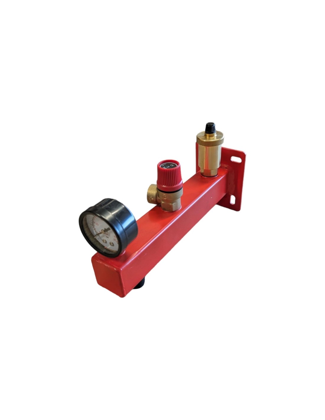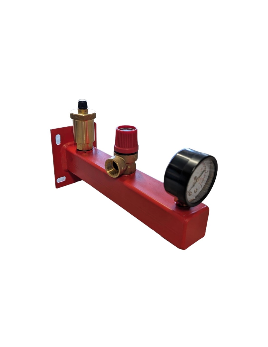 \nGrupa bezpieczeństwa w wersji czerwonej to kompletny zestaw elementów zabezpieczających instalacje ogrzewania centralnego. Skonstruowana z myślą o specyficznych wymaganiach instalacji C.O., grupa ta zapewnia niezawodność i skuteczność działania w warunkach związanych z podgrzewaniem wody. Manometr, zawór bezpieczeństwa i odpowietrznik automatyczny wspólnie tworzą system, który dba o bezpieczne i efektywne funkcjonowanie instalacji, chroniąc ją przed nadmiernym ciśnieniem i zagrożeniami związanymi z rozszerzalnością termiczną.