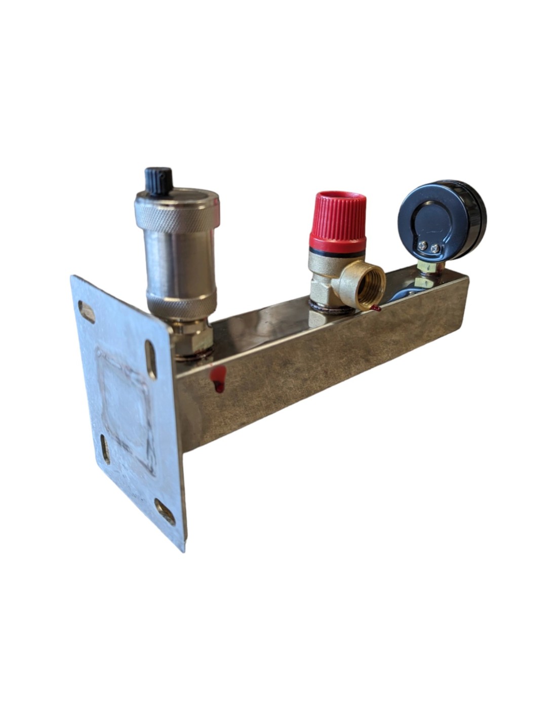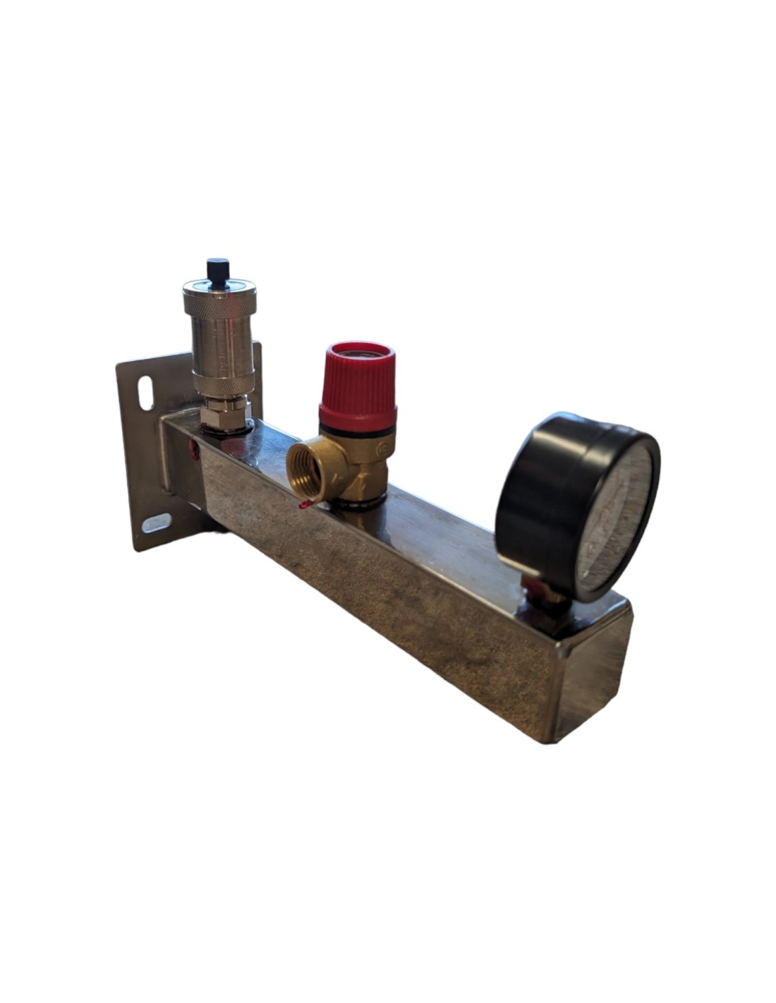 \nGrupy bezpieczeństwa stanowią kompletny układ zabezpieczający instalacje grzewcze i wodne przed niebezpiecznym wzrostem ciśnienia, wynikającym z podwyższonej temperatury wody w instalacji oraz jej rozszerzalnością cieplną. Wersja stal nierdzewna tej grupy bezpieczeństwa jest specjalnie przeznaczona do zastosowań w instalacjach ciepłej wody użytkowej (C.W.U.). \nZastosowanie: