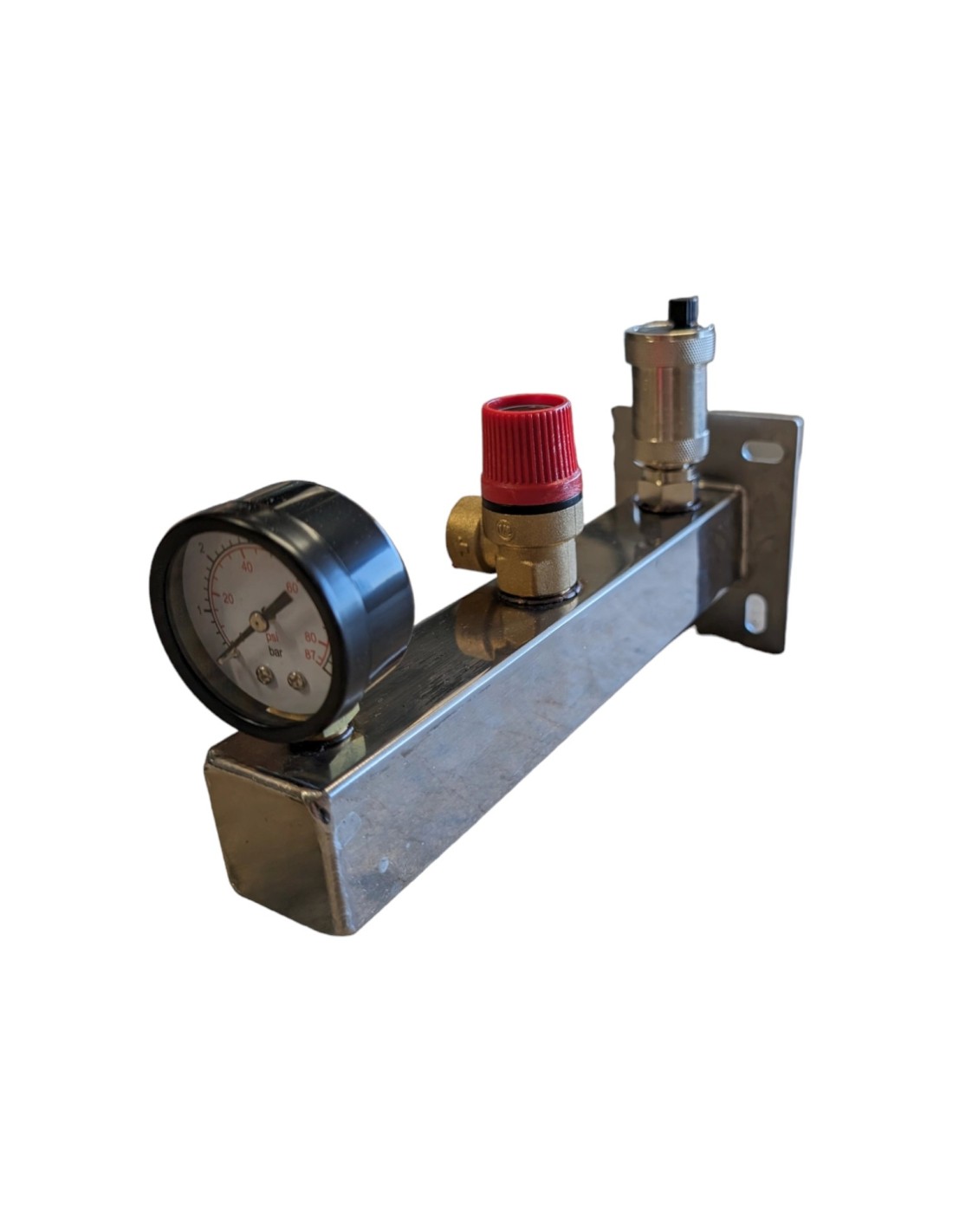 - Manometr 6 Bar: Mierzy ciśnienie w instalacji, umożliwiając monitorowanie i utrzymanie bezpiecznych warunków pracy. \n