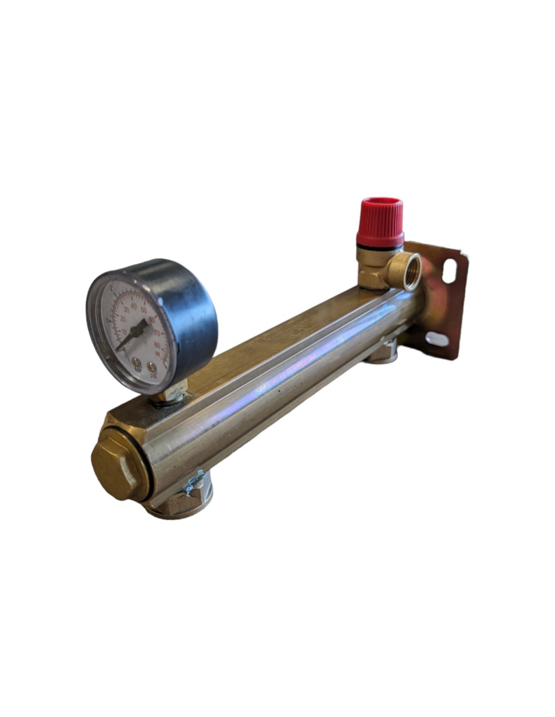 - Manometr 6 Bar: Mierzy ciśnienie w instalacji, umożliwiając monitorowanie i utrzymanie bezpiecznych warunków pracy.