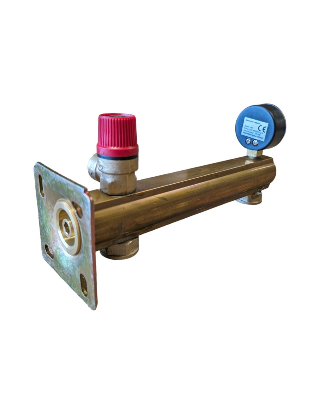 \nGrupa bezpieczeństwa w wersji mosiężnej to kompletny zestaw elementów zabezpieczających instalacje ciepłej wody użytkowej. Skonstruowana z trwałych materiałów, takich jak mosiądz, zapewnia niezawodność i skuteczność działania w warunkach związanych z podgrzaniem wody. Manometr, zawór bezpieczeństwa i odpowietrznik automatyczny wspólnie tworzą system, który dba o bezpieczne i efektywne funkcjonowanie instalacji, chroniąc ją przed nadmiernym ciśnieniem i zagrożeniami związanymi z rozszerzalnością termiczną.