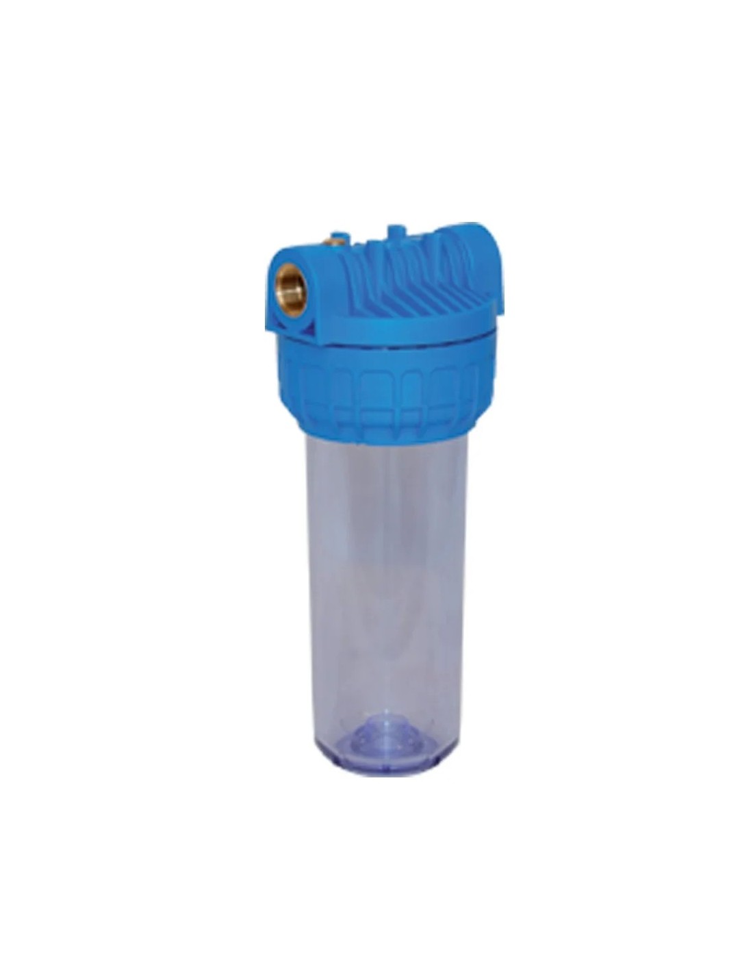 \nObudowa filtra przeznaczona jest do domowych i technologicznych zastosowań w procesie uzdatniania wody pitnej o neutralnym pH. Jest trzyczęściowa, posiada przeźroczystą obudowę, a jej konstrukcja umożliwia łatwy montaż różnych typów wkładów o długości 9 3/4" o różnych właściwościach. Wyposażona jest w mosiężne króćce wewnętrznie gwintowane o średnicy 3/4". \nParametry Techniczne: