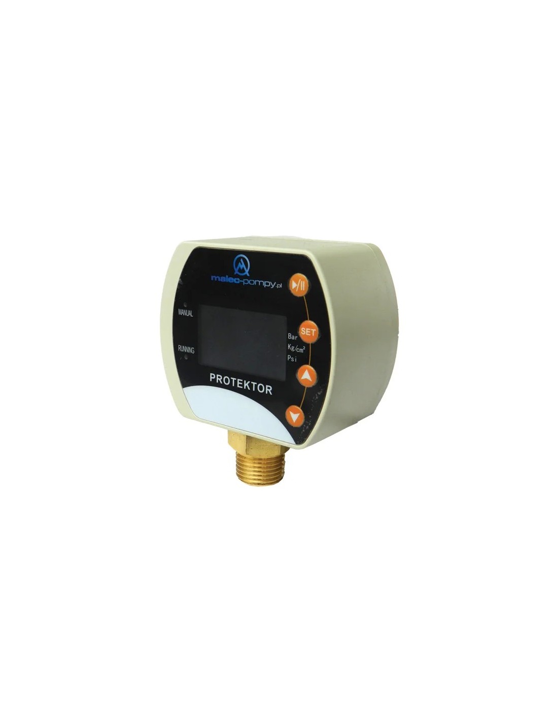 \nProtektor to zaawansowane urządzenie zabezpieczająco-sterujące, stworzone do automatycznego sterowania różnego rodzaju jednofazowymi pompami o mocy do 1,5 kW (maksymalne 10A). Wyposażony w cyfrowy wyświetlacz, sterownik pompy pełni funkcję zabezpieczenia przed suchobiegiem oraz działa jako wyłącznik ciśnieniowy jednocześnie.